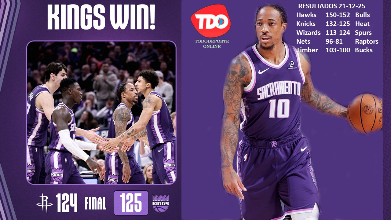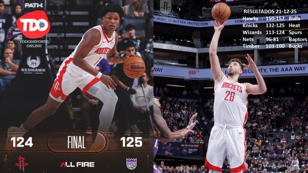 Sacramento, CA.- Dennis Schroder encestó un triple cuando quedaban 2,2 segundos del tiempo extra y llevó a los Kings a un cardiaco triunfo de 125-124 sobre los Rockets de Houston dentro del rol regular de la temporada 2025 de la NBA.