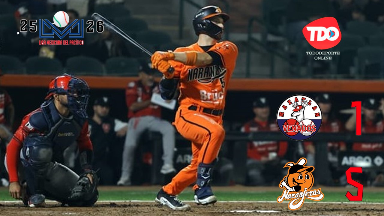Hermosillo, Sonora.- Todd Lott comandó la victoria de los Naranjeros sobre Venados de Mazatlán por 5-1 al conectar un cuadrangular de tres anotaciones en el cuarto rollo al ponerse en marcha la octava serie de la segunda vuelta de la temporada 2025-2026 de la Liga Mexicana del Pacífico.
