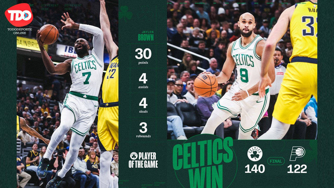 Indianápolis, IN.- Con una actuación dominante de Jaylen Brown, los Celtics de Boston Celtics hilvaron su cuarta victoria tras vencer 140-122 a los Pacers.