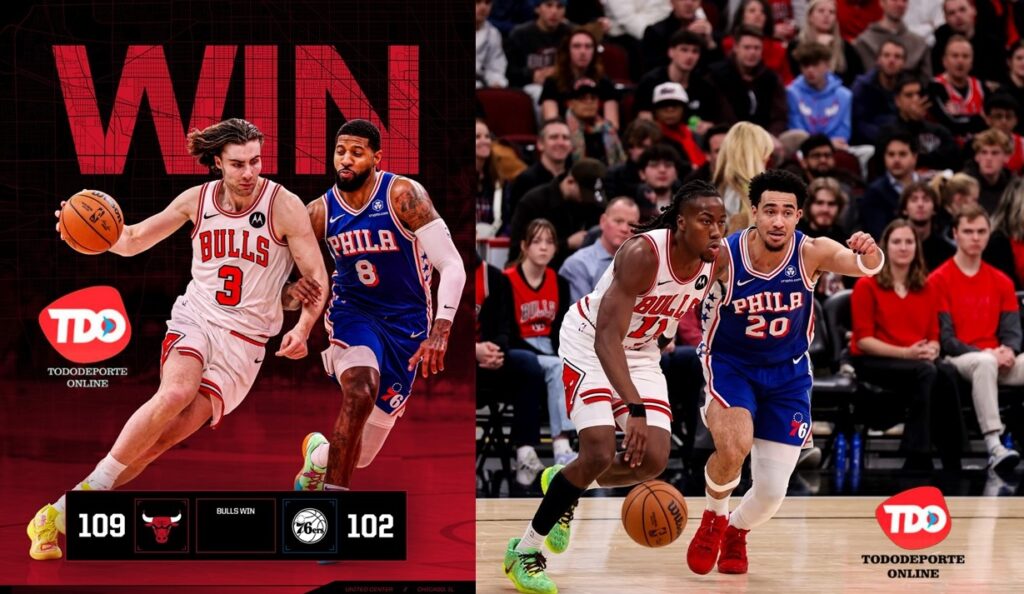 Los Bulls de Chicago completaron una racha de diez puntos consecutivos en la recta final del partido y se impusieron 109-102 sobre los Philadelphia 76ers.