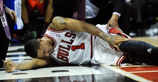 Rose podría haber reinado, pero todo se truncó. Empezaron los problemas de rodillas y en los Playoffs de 2012 la historia dio un volantazo durísimo. Era el primer partido de los Playoffs y los Bulls ganaban por 12 puntos con algo más de un minuto por disputarse. Rose saltó y al caer su rodilla dijo basta. Tenía un desgarro en el cruzado de la pierna izquierda, y el jugador cambió radicalmente.