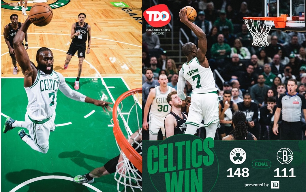 Boston, MA.- Jaylen Brown anotó 28 puntos, repartió nueve asistencias y capturó siete rebotes, y los Celtics de Boston arrollaron 148-111 a los Nets de Brooklyn este viernes.