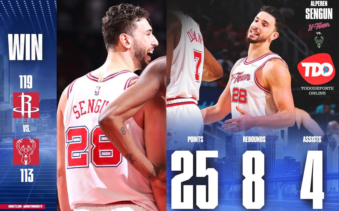 Sengun puso a los Rockets arriba 66-46 con una clavada tras una asistencia de Amen Thompson (18 puntos, nueve rebotes, seis asistencias) a los 8:17 del tercer cuarto. Sin embargo, los Bucks se encendieron desde la línea de tres puntos en ese periodo, anotando 10 de 15 intentos de larga distancia para reducir la desventaja a 85-78 al comenzar el último cuarto.