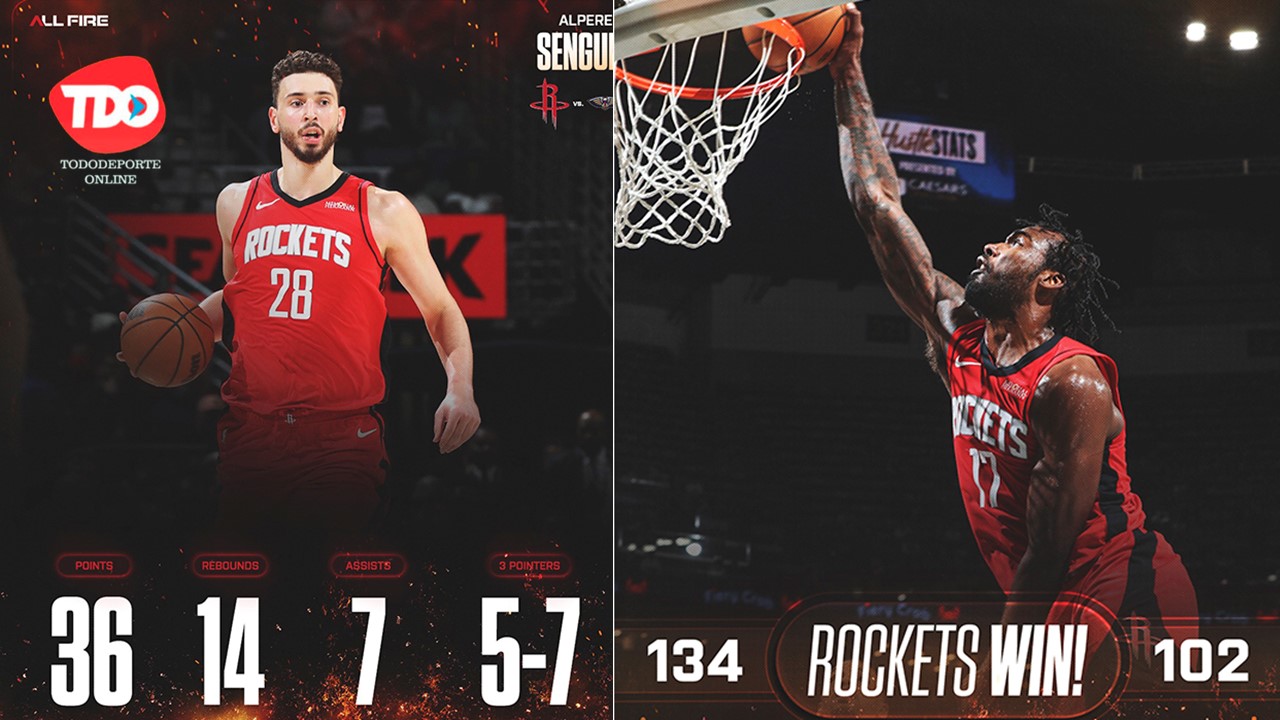 Alperen Sengun fue una de las figuras a la ofensiva de Rockets al anotar 36 puntos, además capturó 13 rebotes y repartió siete asistencias.