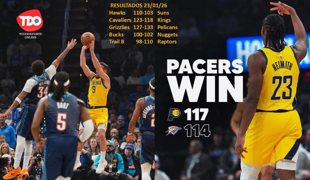 Oklahoma City, OK.- Los Pacers de Indiana lograron uno de sus mejores triunfos de la temporada al imponerse a domicilio 117-114 sobre el Thunder, actual campeón de la NBA.
