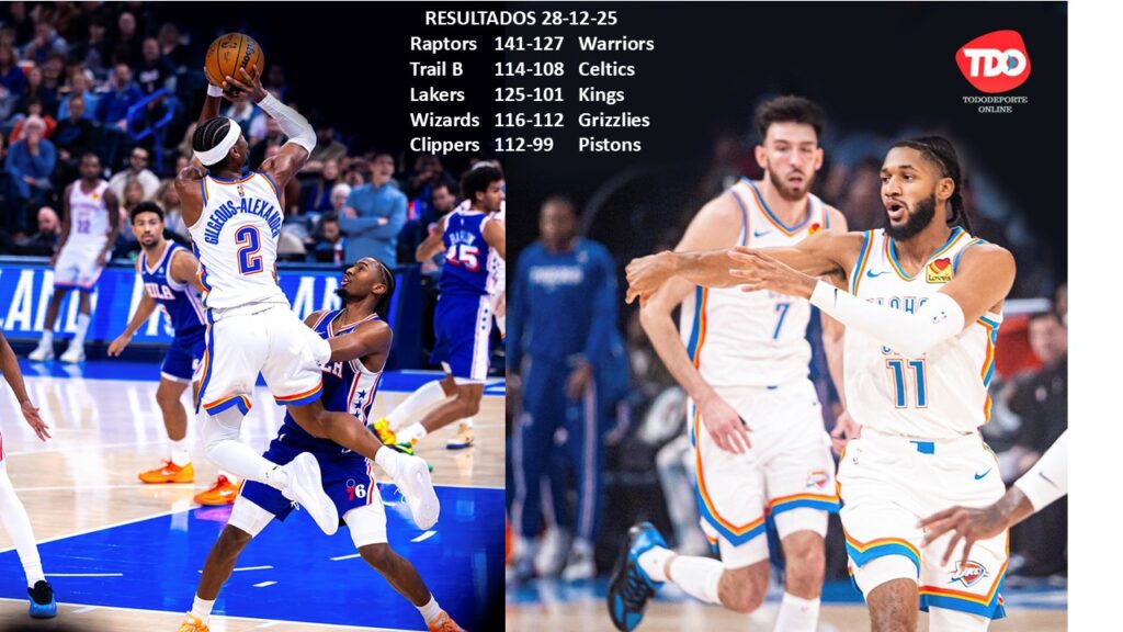 A su lado, Shai Gilgeous-Alexander volvió a ser determinante con 27 puntos y cinco asistencias, liderando la ofensiva de un Thunder que ahora tiene marca de 27-5.