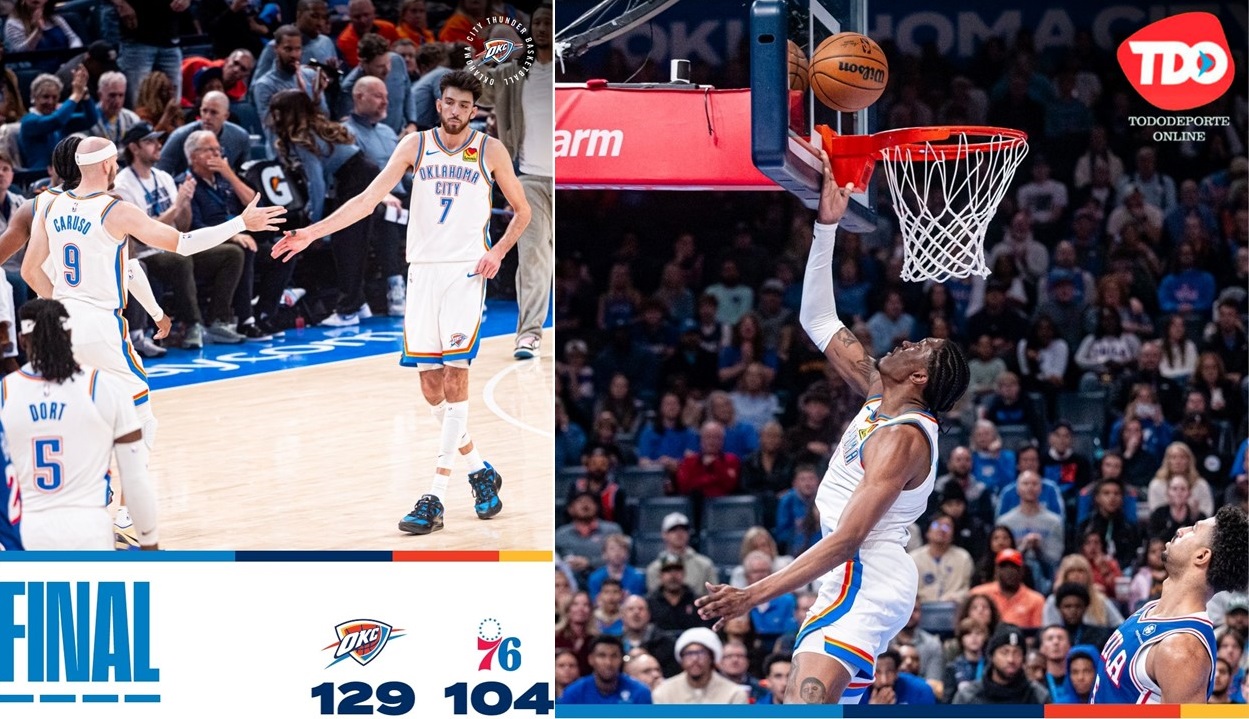 Oklahoma City, OK.- Tras cuatro derrotas en seis salidas, el Thunder recuperó su mejor versión al vencer con autoridad a los Sixers de Filadelfia por 129-104, en un partido que devolvió la confianza a la afición.