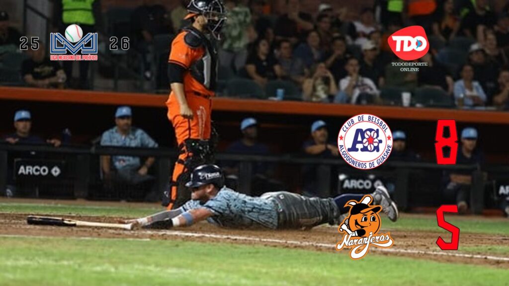 Hermosillo, Sonora.- Con un rally de tres carreras en la sexta entrada, los Algodoneros de Guasave se enfilaron a una victoria sobre los Naranjeros al son de 8-5 para sacar la serie del estadio Fernando Valenzuela.