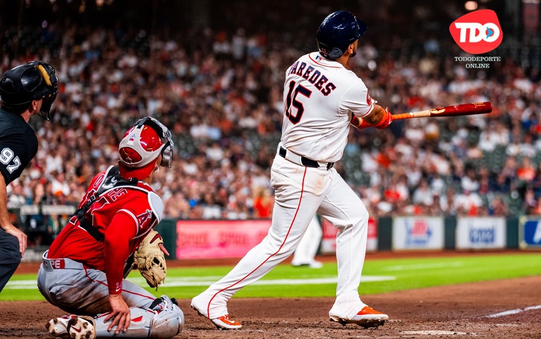 Houston, TX.- Los Astros anotaron 11 carreras consecutivas, incluyendo ocho después de dos outs en la sexta entrada, para remontar y vencer a los Angelinos de Los Ángeles por 11-9 en el tercer juego de la serie inaugural en el Daikin Park.