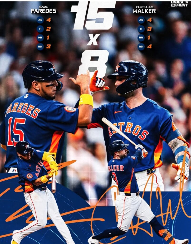 El mexicano Isaac Paredes añadió un jonrón de dos carreras en la tercera entrada, y después de que Paredes conectó un sencillo productor para remolcar al puertorriqueño Carlos Correa en la quinta, Walker pegó un doble de dos carreras para darle a Houston una ventaja de 7-0.
