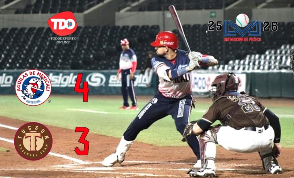 Ciudad Obregón, Sonora.- Con oportuno triple en la novena entrada de Yadir Drake, Los Águilas derrotaron a Tucson Baseball Team por apretado marcador de 4-3 en el inicio de la serie que se juega en la casa de los Yaquis.