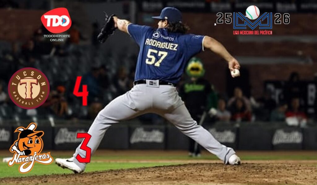 Hermosillo, Sonora.- Tucson Baseball Team alcanzó 4.5 puntos al concluir la primera vuelta tras derrotar 4-3 a los Naranjeros en el estadio Fernando Valenzuela.