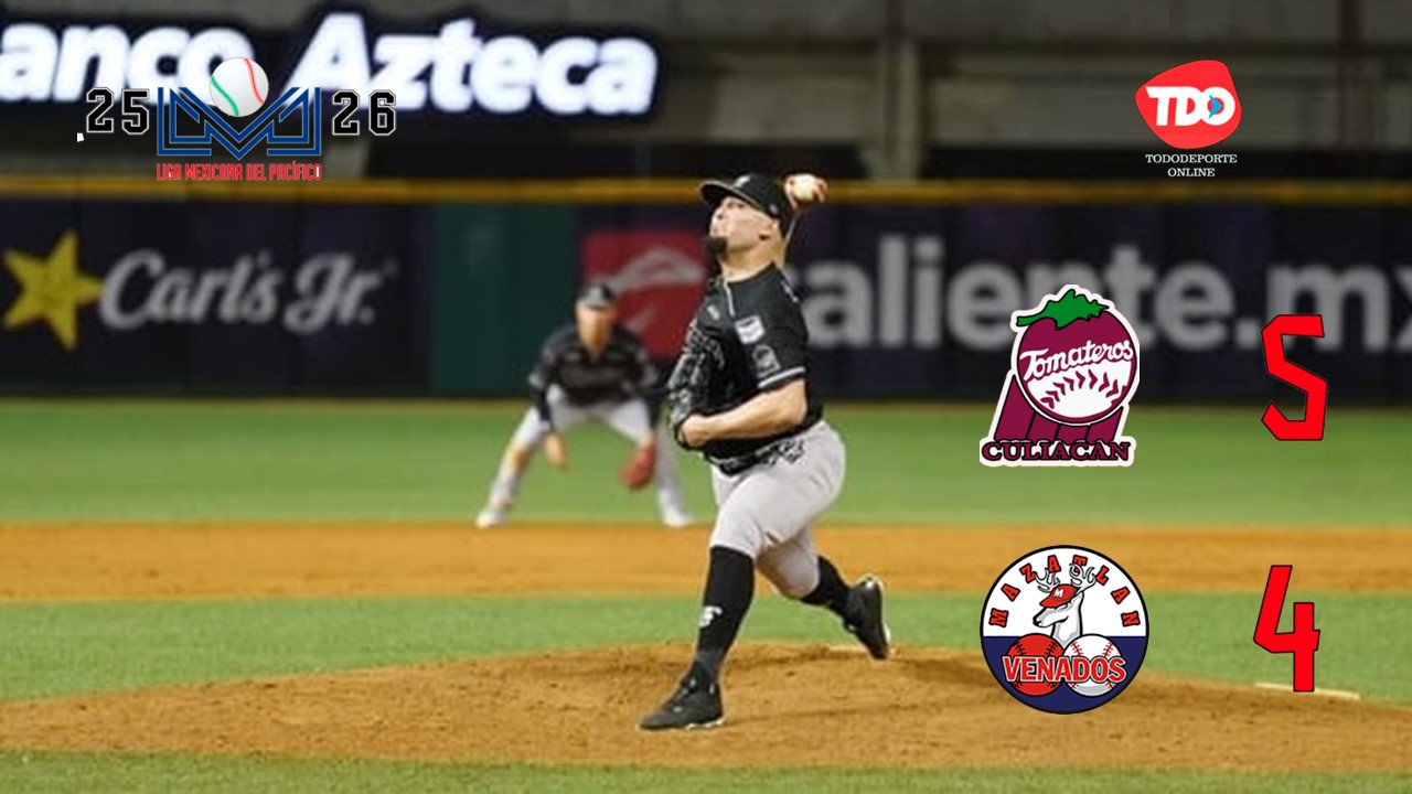 Mazatlán, Sinaloa.- Los Tomateros de Culiacán pintaron de guinda el Clásico Sinaloense tras derrotar 5-4 a los Venados de Mazatlán en 10 capítulos en el estadio Teodoro Mariscal al concluir la segunda serie de la parte complementaria de la temporada 2025-2026 de la Liga Mexicana del Pacífico.