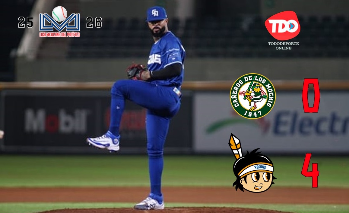 Ciudad Obregón, Sonora.- El lanzador Vladimir Gutiérrez silenció a la ofensiva de Cañeros de Los Mochis, para guiar a la Tribu a un triunfo por blanqueada de 4-0 en el primero de la serie al continuar el rol regular de la campaña 2025 de la Liga Mexicana del Pacífico.