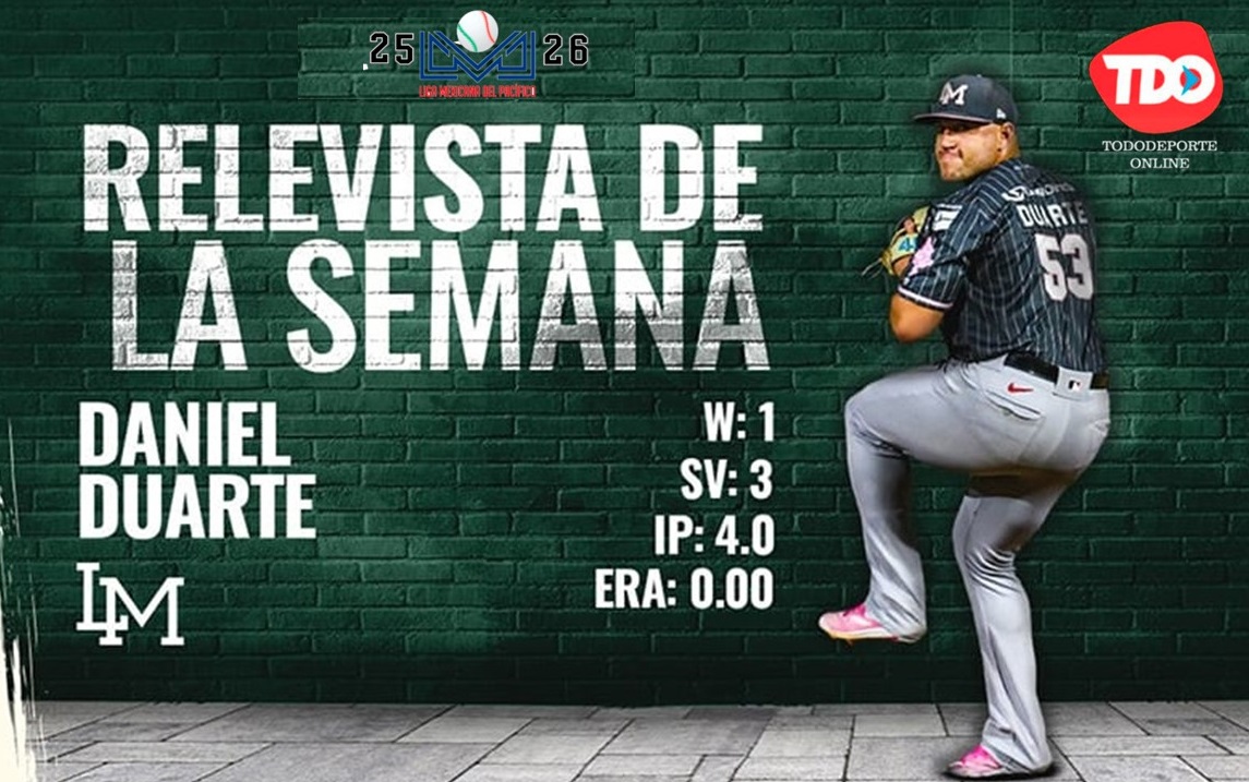 Duarte pasó a cuatro rivales por la vía de la K para cerrar con 0.00 en Era y 0.75 el WHIP semanal.