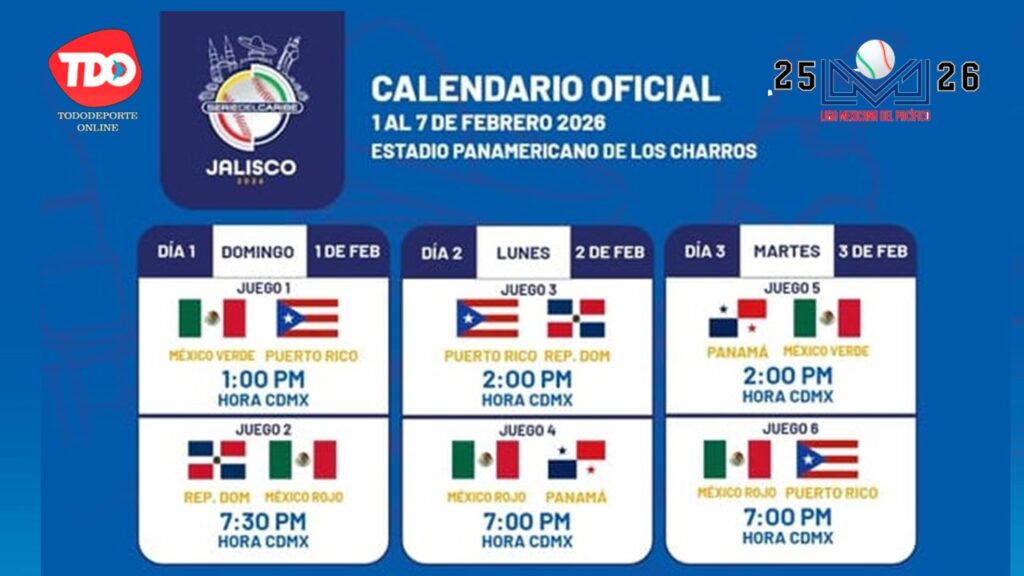 Santo Domingo, RD.-  La Confederación de Beisbol Profesional del Caribe (CBPC) y el Comité Organizador Jalisco 2026 dieron a conocer de manera oficial el calendario de juegos de la 68.ª Serie del Caribe, a celebrarse en el estadio Panamericano de Zapopan del 1 al 7 de febrero de 2026.