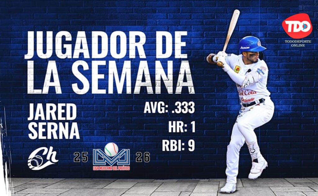 Los Charros de Jalisco tomaron la cima del standing este domingo y uno de los elementos que ha sido clave para ello es Jared Serna, pelotero que brilló a la ofensiva y se hizo acreedor al Premio a Jugador de la Semana, Presentado pro ARCO.