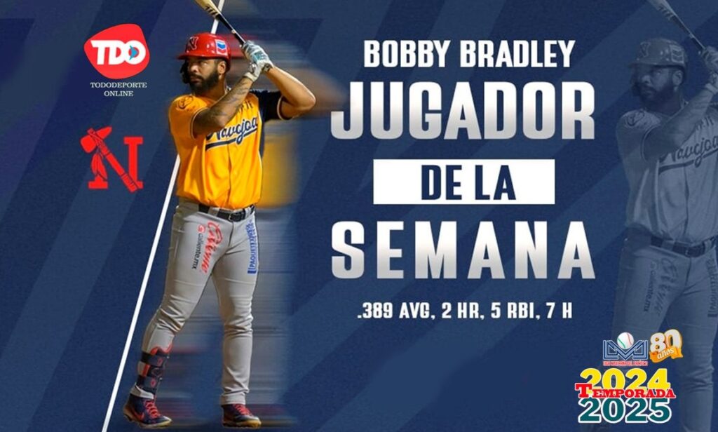 Bradley, quién en la campaña pasada reforzó a los Mayos en Playoffs e impuso récord de cinco juegos pegando de jonrón, tuvo una semana en las series de la tribu ante Venados de Mazatlán y Algodoneros de Guasave de .389 en porcentaje de bateo, con 7 hits, 2 jonrones y 5 carreras impulsadas.