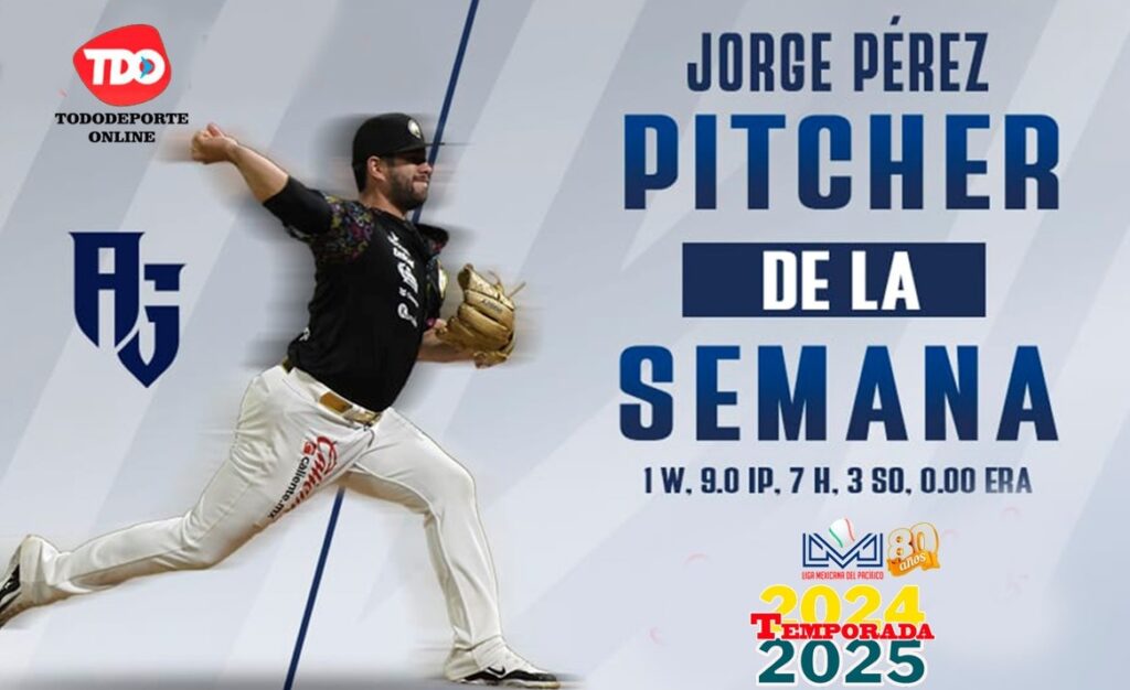 El derecho de los Algodoneros de Guasave, Jorge Pérez ganó el nombramiento a Pitcher de la Semana tras convertirse en el tercer lanzador en tirar juego completo en la presente campaña de la temporada 2024-2025. presentada por Caliente.mx, primero que lo hace lanzando 9 entradas.