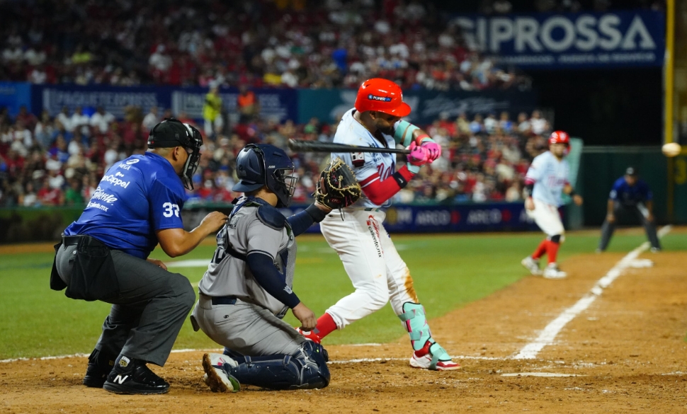 Albert Lara abrió con doble y anotó con sencillo productor del emergente Ramón Ríos, JP Martínez negoció base, Luis Verdugo tocó la esférica, pero Rafael Córdova puso fuera en la tercera a Ríos, después vino un error del antesalista para instalar corredores en posición de anotar y 1 out.