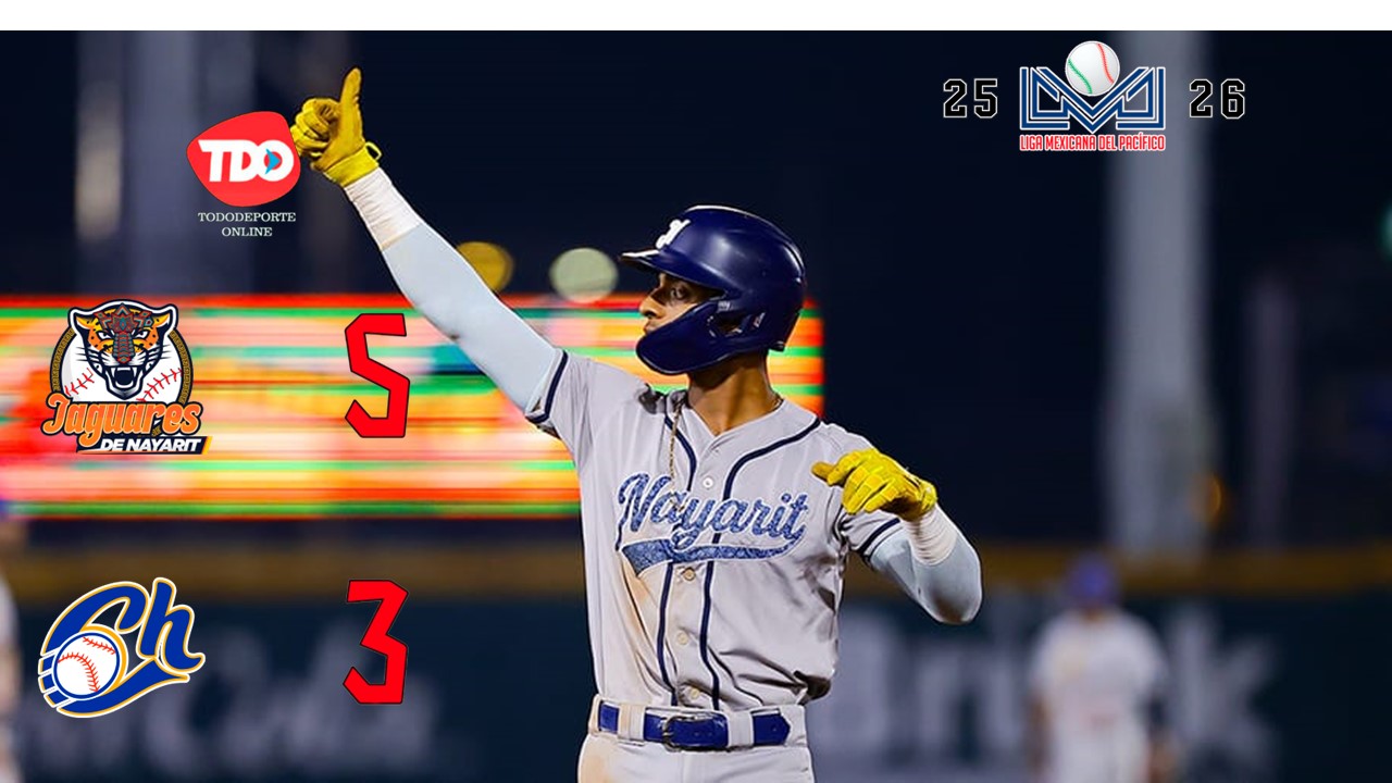 Zapopan, Jalisco.- Los Jaguares de Nayarit derrotaron 5 por 3 a los Charros de Jalisco, para conseguir su segunda serie por limpia en la penúltima jornada del rol regular de la temporada 2025-2026 de la Liga Mexicana del Pacífico.