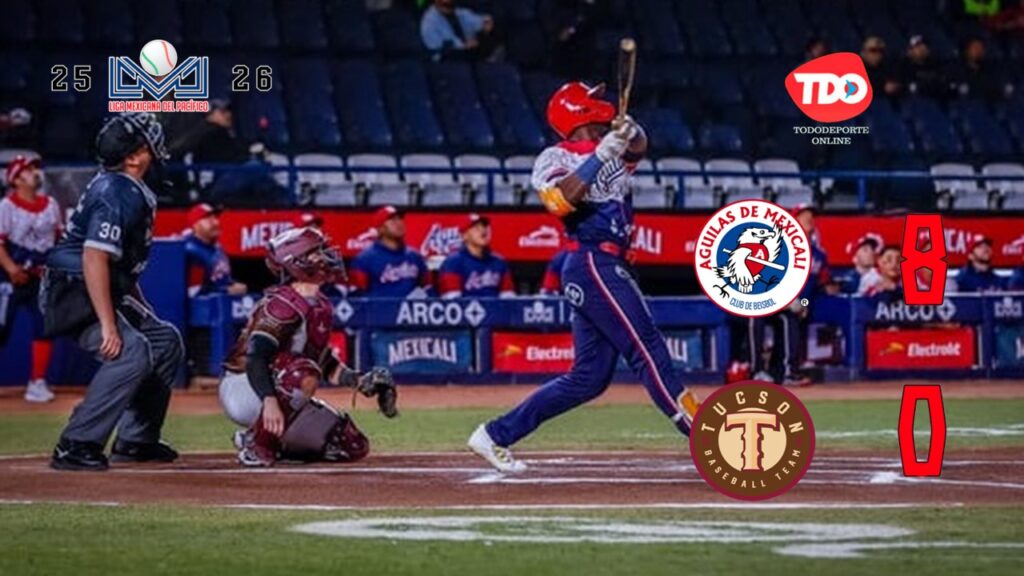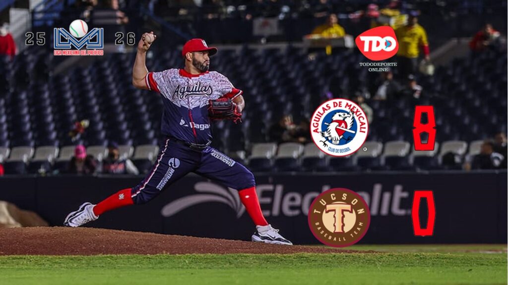 Mexicali, BC.- Los Caballeros Águilas ganaron por primera ocasión en la historia de la Liga Mexicana del Pacífico una serie de visita en su propio Nido en la frontera tras blanquear 8-0 en el tercer juego a Tucson Baseball Team, que por cuestiones administrativas en migración continúa jugando sus partidos de local en casa ajena.