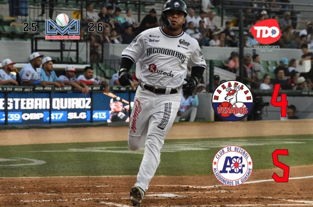 Guasave, Sinaloa.- Carlos Arellano sacó un rodado de hit con las bases llenas en la parte baja del onceavo rollo, para que los Algodoneros de Guasave dejaran tirados en el terreno de juego a los Venados de Mazatlán por segunda noche consecutiva, ahora con pizarra de 5-4 y de paso consiguieran su primera serie de la campaña.
