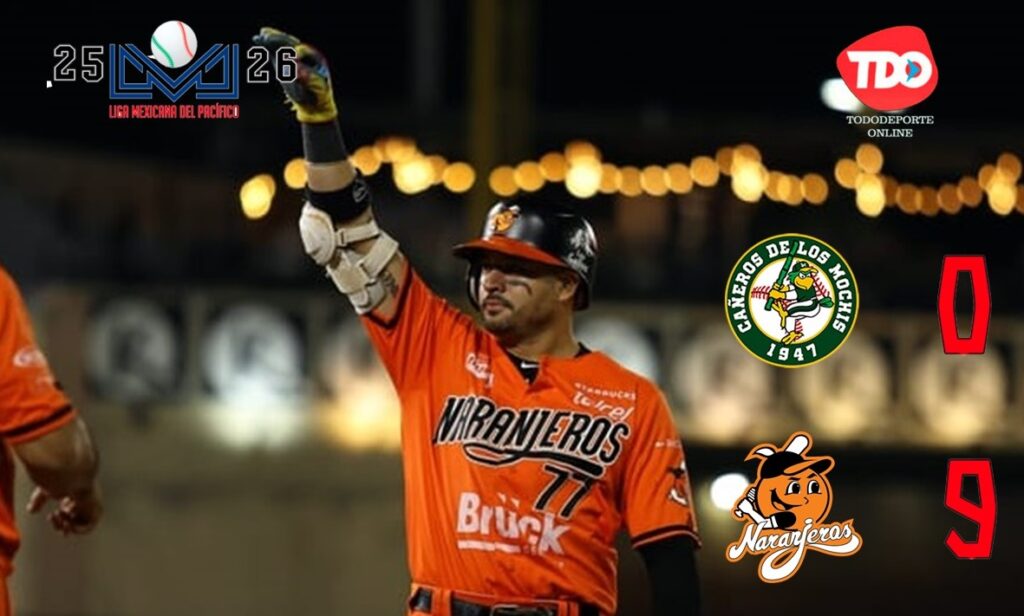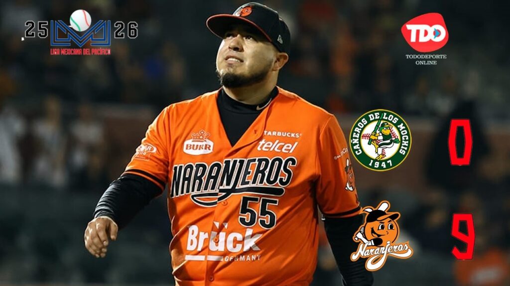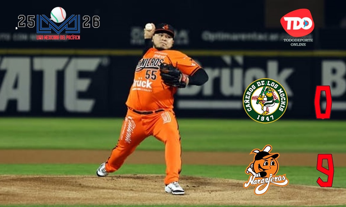 Hermosillo, Sonora.- José Samayoa tuvo una destacada labor en la loma de los disparos, para comandar una blanqueada de los Naranjeros sobre Cañeros de Los Mochis por 9-0 al continuar la segunda vuelta de la temporada 2025-2026 de la Liga Mexicana del Pacífico.
