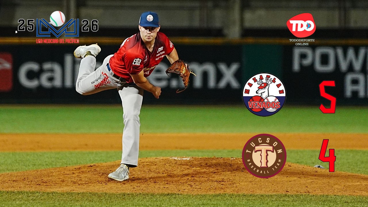 Mazatlán, Sinaloa.- Un elevado de sacrificio de Keven Lamas impulsó a Andrés Álvarez con la carrera de la diferencia en la novena entrada, para que Venados de Mazatlán venciera 5-4 a Tucson Baseball Team, en acciones celebradas en el Teodoro Mariscal y correspondientes a la Temporada 2025-2026 de la Liga Arco Mexicana del Pacífico.