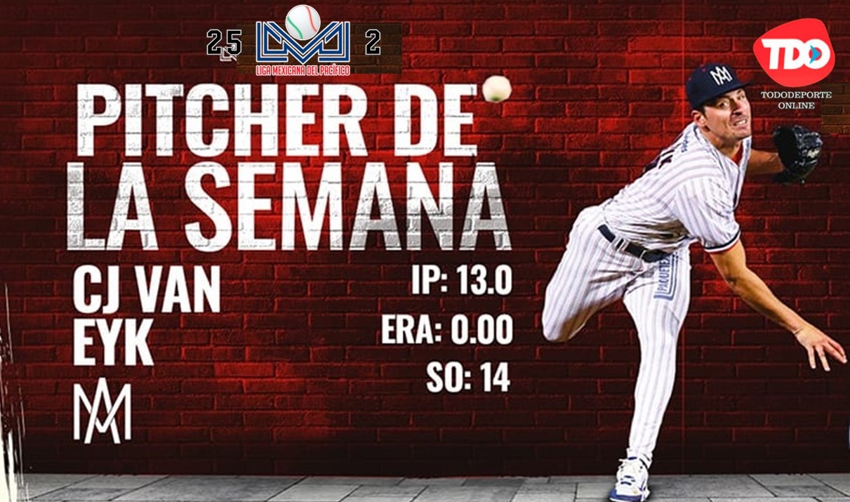 Guadalajara, Jalisco.- Dos tremendas salidas con los Águilas de Mexicali marcaron la diferencia para que el serpentinero estadounidense CJ Van Eyk se llevara el reconocimiento a Pitcher de la Semana por la Liga Mexicana del Pacífico.