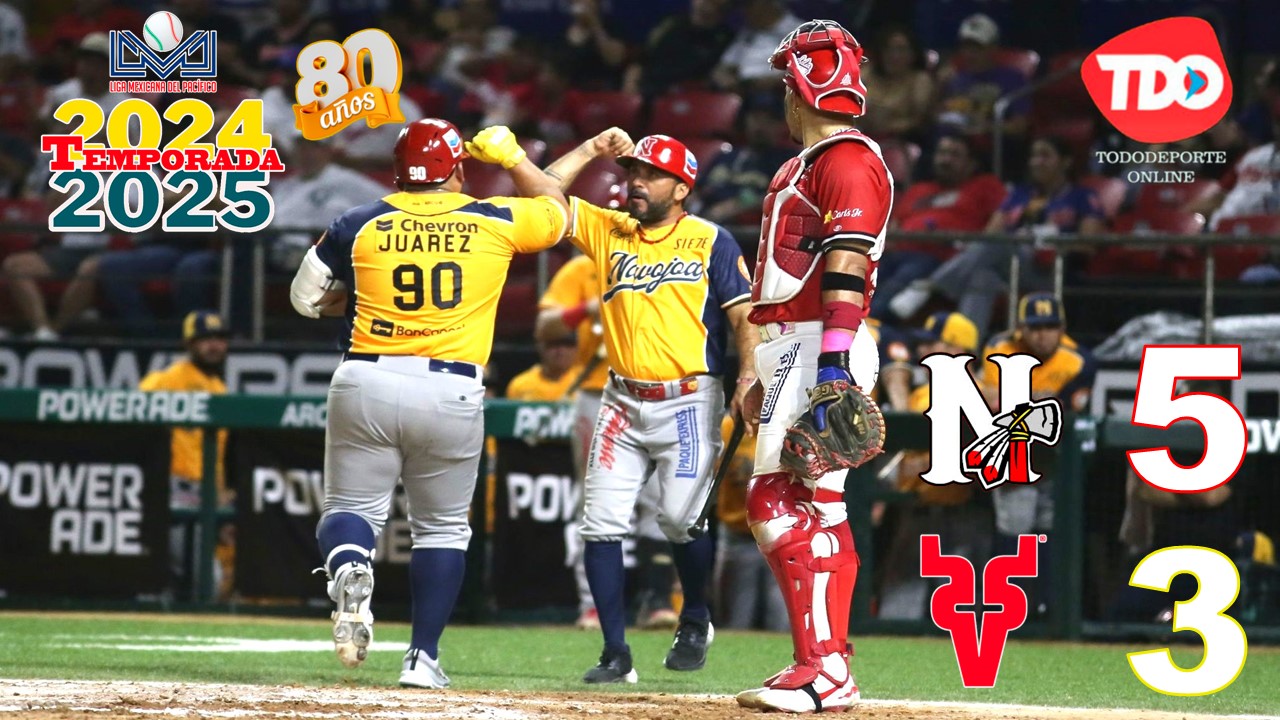 Mazatlán, Sinaloa.- Los Mayos de Navojoa se quitaron el zapato al conseguir la primera victoria de la campaña 2024-2025 de la Liga Mexicana del Pacífico tras ganar el primero de la serie a los Venados de Mazatlán con pizarra de 5-3 en el estadio Teodoro Mariscal.