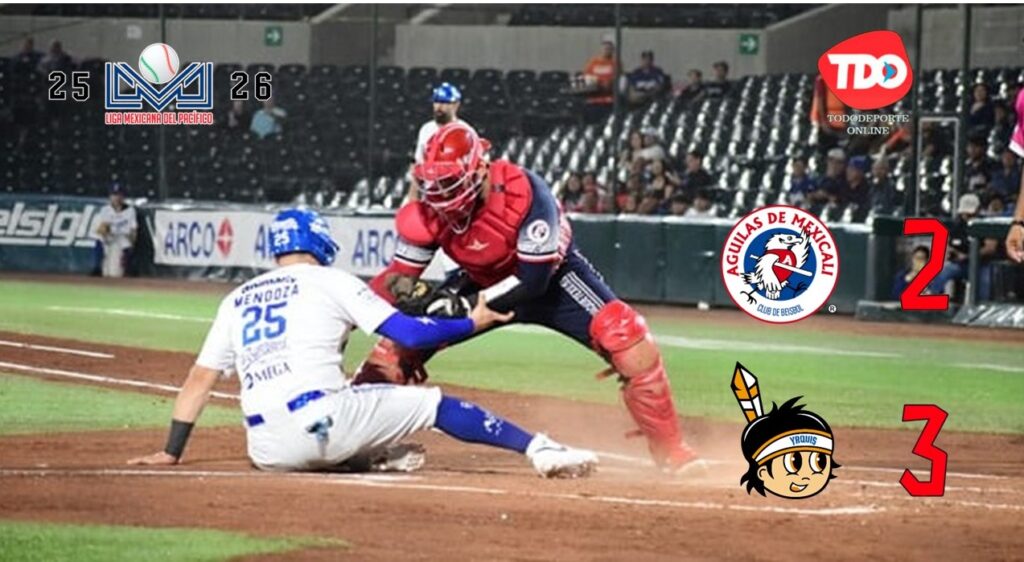 Los Águilas de Mexicali fueron a las bases en varios innings pero la defensiva de Yaquis evitó daño, manteniendo la ventaja de 3 carreras por 2 hasta el final