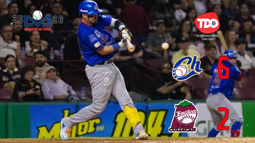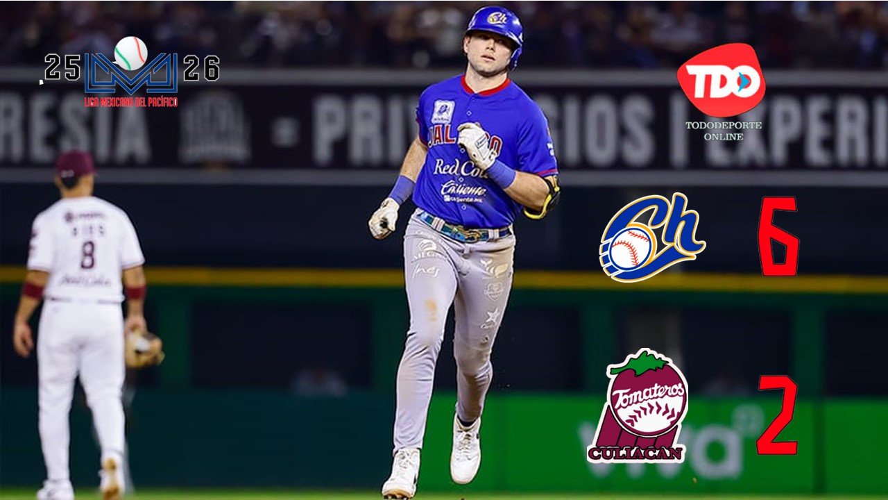 Culiacán, Sinaloa.- Mateo Gil explotó su bat en par de ocasiones para producir cinco anotaciones y guiar a los Charros de Jalisco a un triunfo sobre los Tomateros al son de 6 carreras a 2 en el primer juego de la final de la campaña 2025-2026 de la Liga Mexicana del Pacífico.