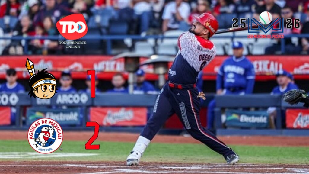 Mexicali, BC.- Los Águilas asestaron el tercer descalabro consecutivo a los Yaquis de Ciudad Obregón al ganar con pizarra de 2-1, para colocar la serie 3-0 dentro de los playoffs de la campaña 2025-2026 de la Liga Mexicana del Pacífico.