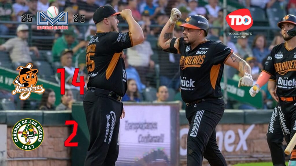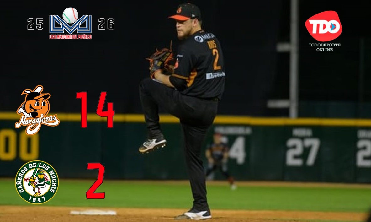 Los Mochis, Sinaloa.- Con una despiadada ofensiva de 18 imparables y 14 carreras, los Naranjeros de Hermosillo hicieron leña de los Cañeros tras ganar con paliza de 12-4 para llevarse la serie del estadio Emilio Ibarra Almada.