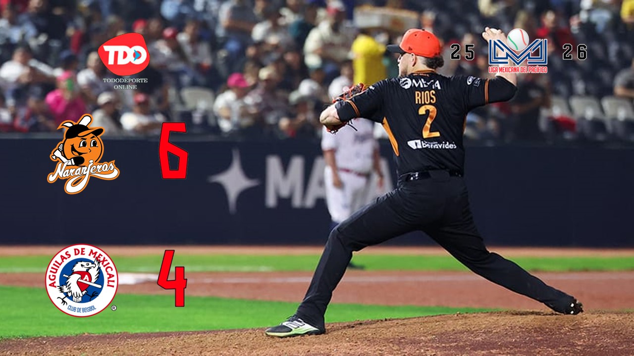 Mexicali, BC.- Con una ofensiva fuerte en las primeras entradas los Naranjeros de Hermosillo vencieron este viernes 6-4 a los Águilas en el Nido al iniciar la séptima serie del rol regular de la campaña 2025-2026 de la Liga Mexicana del Pacífico.