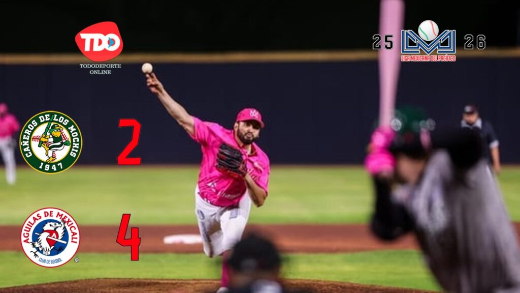 Mexicali, BC.- El cuarto bat Phillip Evans remolcó tres carreras, para comandar la victoria de los Águilas sobre Cañeros de Los Mochis por 4-2 en el primer juego de la novena serie del rol regular de la campaña 2025-2026 de la Liga Mexicana del Pacífico.