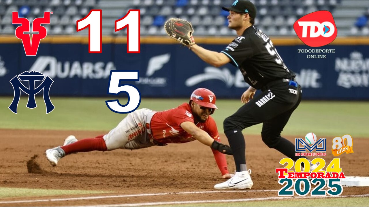Monterrey, Nuevo León.- La ofensiva de Venados de Mazatlán estalló 19 imparables para propinar otra paliza a los Sultanes por 11-5 y de paso barrer a los regios en su propia casa.
