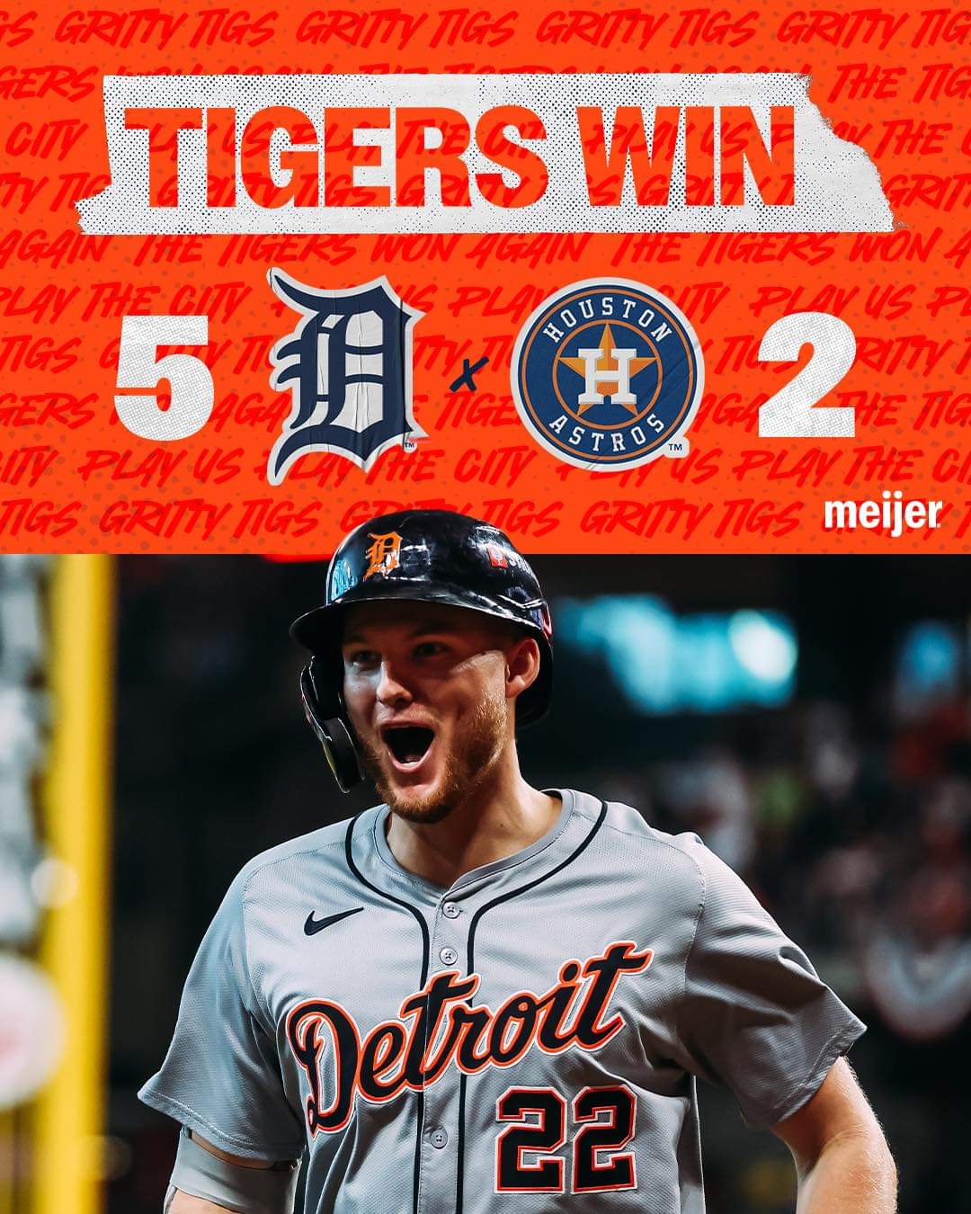 Parker Meadows puso adelante a los Tigres con un jonrón solitario por el jardín derecho en la alta de la sexta entrada, y después de una reacción de Houston en el séptimo rollo, definieron el partido con un rally de cuatro anotaciones en la parte alta del octavo capítulo con un doblete de Andy Ibáñez que vació la caja.