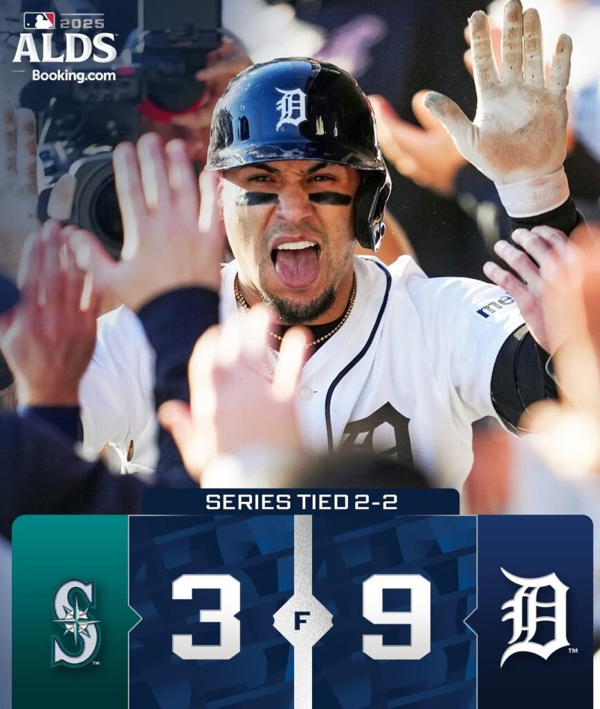 Los Tigres todavía sumaron una carrera más, de nuevo vía cuadrangular de Gleyber Torres, en la séptima, y fabricaron una más en la octava. Desde la Serie Mundial de 1968 que Detroit no anotaba tantas carreras en un juego de postemporada, así que todo se definirá el viernes en Seattle.