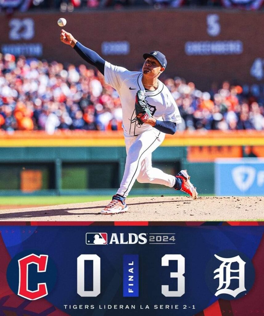 Detroit, MI.- Los Tigres repitieron la dosis del primer juego a los Guardianes de Cleveland tras vencerlos este miércoles 3-0 y ponerse a un triunfo de ganar la Serie Divisional de la Liga Americana.
