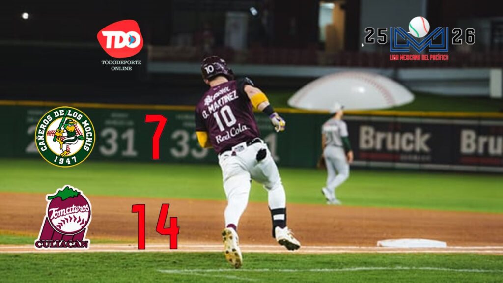 Culiacán, Sinaloa.- La ofensiva de Tomateros aplicó una despiadada ofensiva de 15 imparables la noche del martes en el estadio General Ángel Flores, y apalear 14-7 a los Cañeros de Los Mochis en el primero de la quinta serie de la segunda vuelta de la temporada 2025-2026 de la Liga Mexicana del Pacífico.