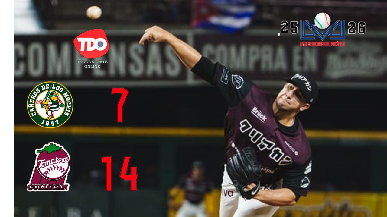 Culiacán, Sinaloa.- La ofensiva de Tomateros aplicó una despiadada ofensiva de 15 imparables la noche del martes en el estadio General Ángel Flores, y apalear 14-7 a los Cañeros de Los Mochis en el primero de la quinta serie de la segunda vuelta de la temporada 2025-2026 de la Liga Mexicana del Pacífico.