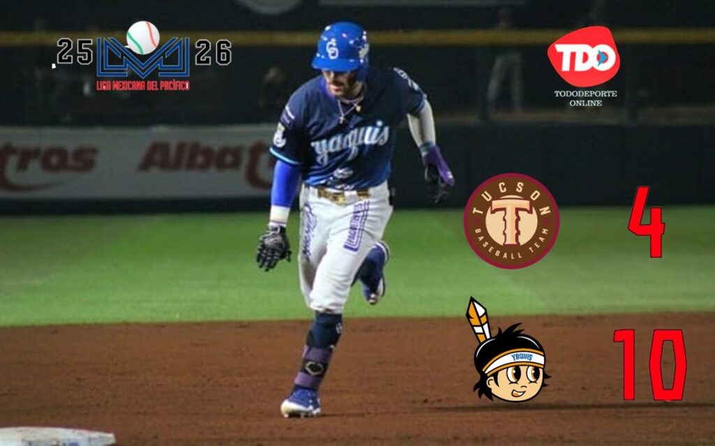 Ciudad Obregón, Sonora.- El abridor Felipe González maniató a la ofensiva de Tucson Baseball en un imparable en siete rollo, para conducir a los Yaquis a una victoria sobre Tucson Baseball por paliza de 10-4.