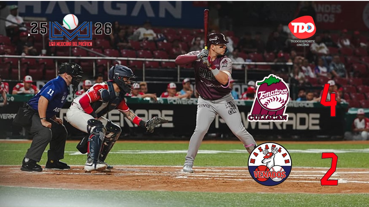 Mazatlán, Sinaloa.- Los Tomateros de Culiacán arruinaron en el puerto el festejo al legendario lanzador Francisco “Pancho Ponche” Campos tras vencer a los Venados con pizarra de 4-2 en el inicio del Clásico Sinaloense en el Teodoro Mariscal dentro de la segunda serie de la parte complementaria de la campaña 2025-2026 de la Liga Mexicana del Pacífico.