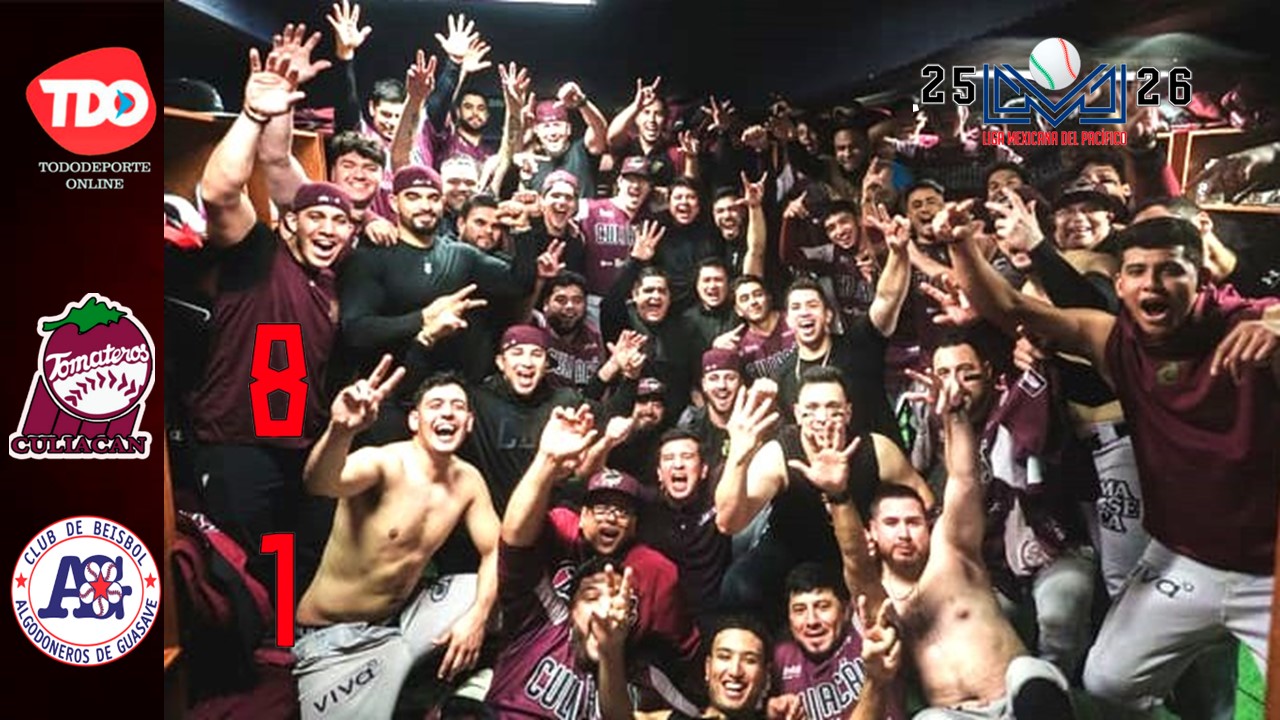 Guasave, Sinaloa.- Los Tomateros de Culiacán aseguraron su participación en la Serie del Caribe 2026 tras ganar 8-1 y barrer a los Algodoneros en el estadio Francisco Carranza Limón en las semifinales de la campaña 25-26 de la Liga Mexicana del Pacífico.