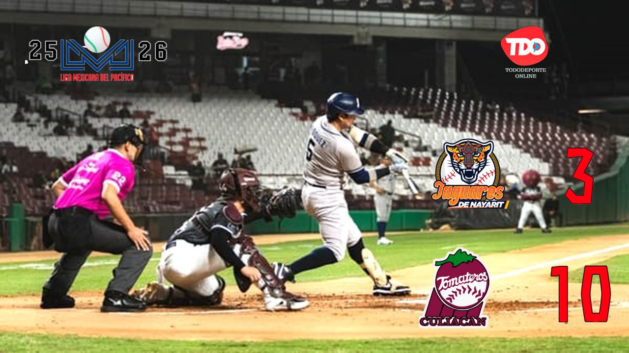 Culiacán, Sinaloa.- Tomateros tuvo la noche del martes un buen inicio en la segunda vuelta de la campaña 2025-2026 de la Liga Mexicana del Pacífico tras derrotar por paliza de 10-3 sobre los Jaguares de Nayarit.