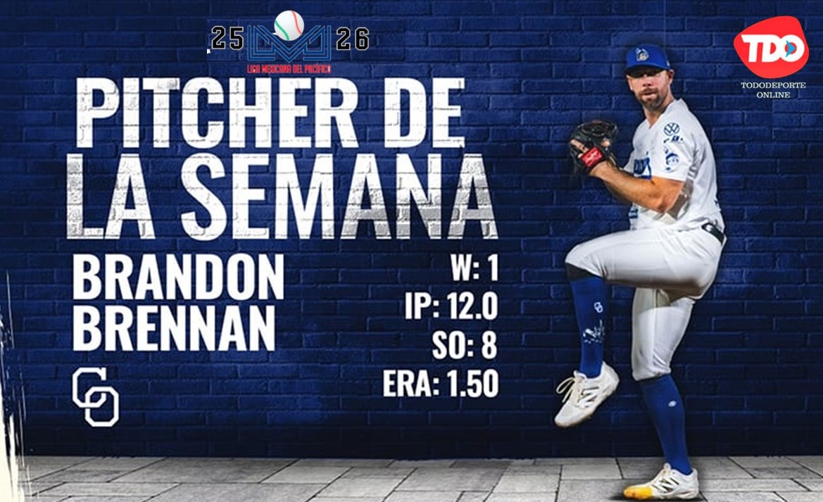 Guadalajara, Jalisco.- La tribu Yaquis de Ciudad Obregón obtuvo por segunda jornada consecutiva la designación de Pitcher de la Semana en la campaña 2025-2026 de la Liga Mexicana del Pacífico, ahora de la mano del lanzador derecho Brandon Brennan.