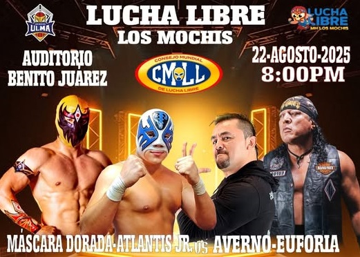 Los Mochis, Sinaloa.- Por primera ocasión en su trayectoria luchística, Atlantis Jr. se presentará ante la afición mochitense haciendo pareja con el espectacular volador Máscara Dorada, para enfrentarse en la batalla estelar a los rudos Averno y Euforia el viernes 22 de agosto en el auditorio Benito Juárez García.