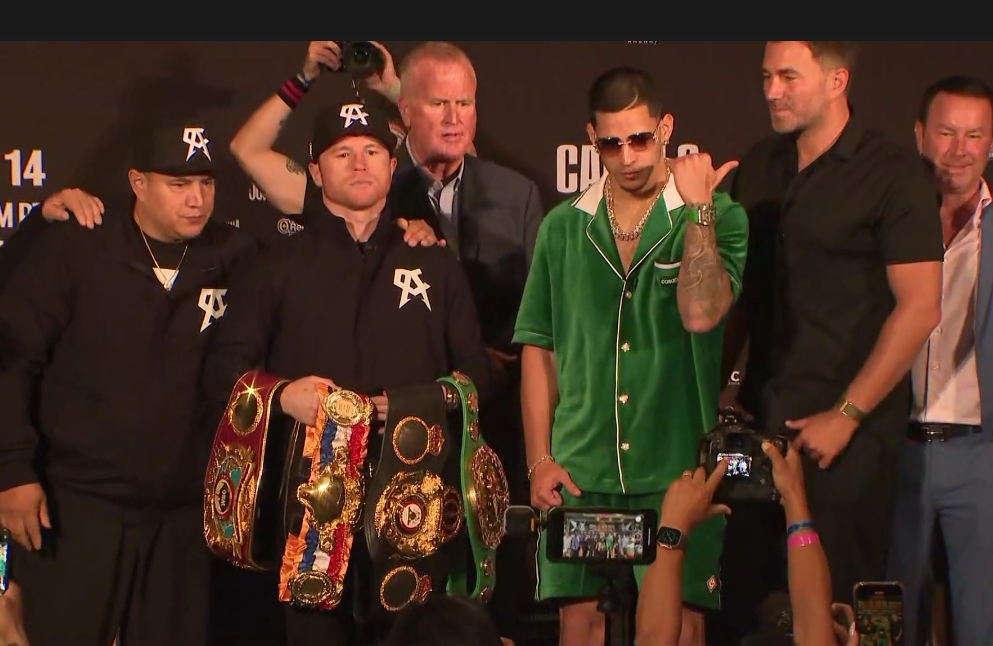 Las Vegas, Nevada.- A diferencia de las conferencias en Nueva York y Los Ángeles, el mexicano Saúl «Canelo» Álvarez y el boricua Edgar Berlanga bajaron la espuma a su chocolate en el tercer face to face que tuvieron este miércoles, previo al combate del próximo sábado por el título supermediano del CMB, AMB y OMB.